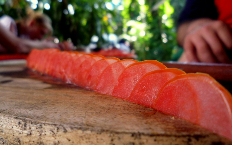 오전에 도착해서 첫 번째로 방문한 곳은 현지 시장이었어요. 선생님께서 태국 로컬 시장에서 파는 다양한 식재료에 대해 친절하게 설명해주셨는데, 평소에 보지 못했던 신기한 재료들이 많아서 정말 흥미로웠어요. 시장 구경을 마치고 쿠킹 스쿨에 도착하니, 아늑한 분위기의 텃밭이 눈에 들어왔어요. 텃밭에는 다양한 식물과 식재료들이 자라고 있었는데, 선생님께서 하나하나 설명해주셔서 요리에 대한 이해도를 높일 수 있었답니다.